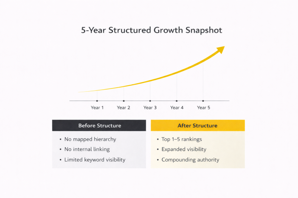 Redesigns become rare because structure is refined instead of replaced. Messaging stabilizes because positioning is clarified before amplification. Content builds on itself rather than competing with itself. Visibility expands naturally as authority layers accumulate.